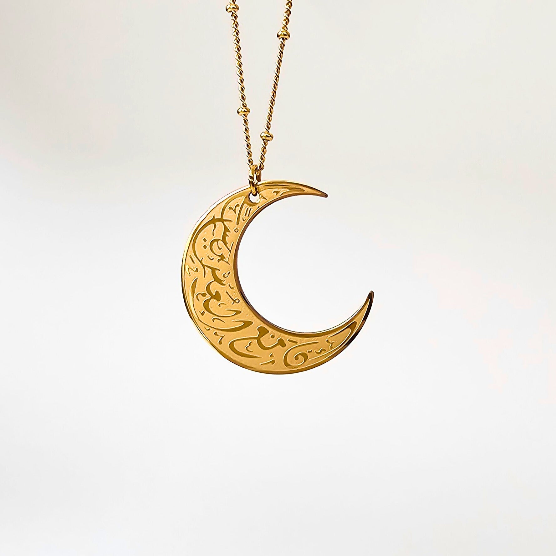 Embrace your inner strength with our Moon Dotted Chain Necklace. Featuring the inspiring phrase 'Verily with Hardship comes ease', this necklace serves as a reminder to stay positive and resilient through life's challenges. A beautiful accessory with a powerful message.