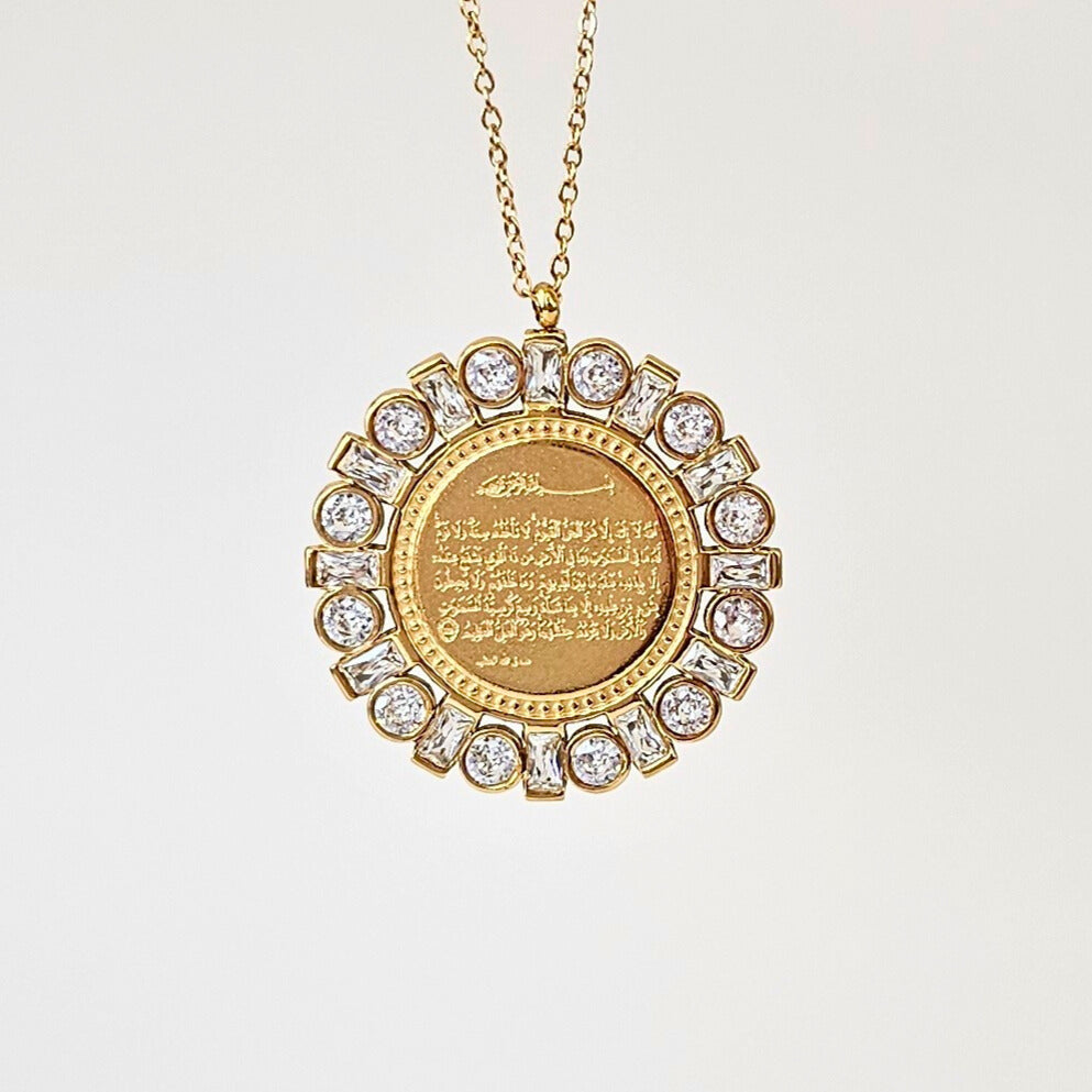The Luminous White Ayatul Kursi Necklace is a stunning blend of faith, purity, and elegance. Featuring a beautifully engraved pendant with the powerful Ayatul Kursi and accented with luminous white tones, this necklace symbolizes divine protection, peace, and spiritual strength. Its refined and timeless design makes it perfect for everyday wear or special occasions, offering both meaning and style. Crafted from premium gold-plated materials, the Luminous White Ayatul Kursi Necklace is hypoallergenic, durable, and a thoughtful gift for loved ones or a cherished addition to your own collection.